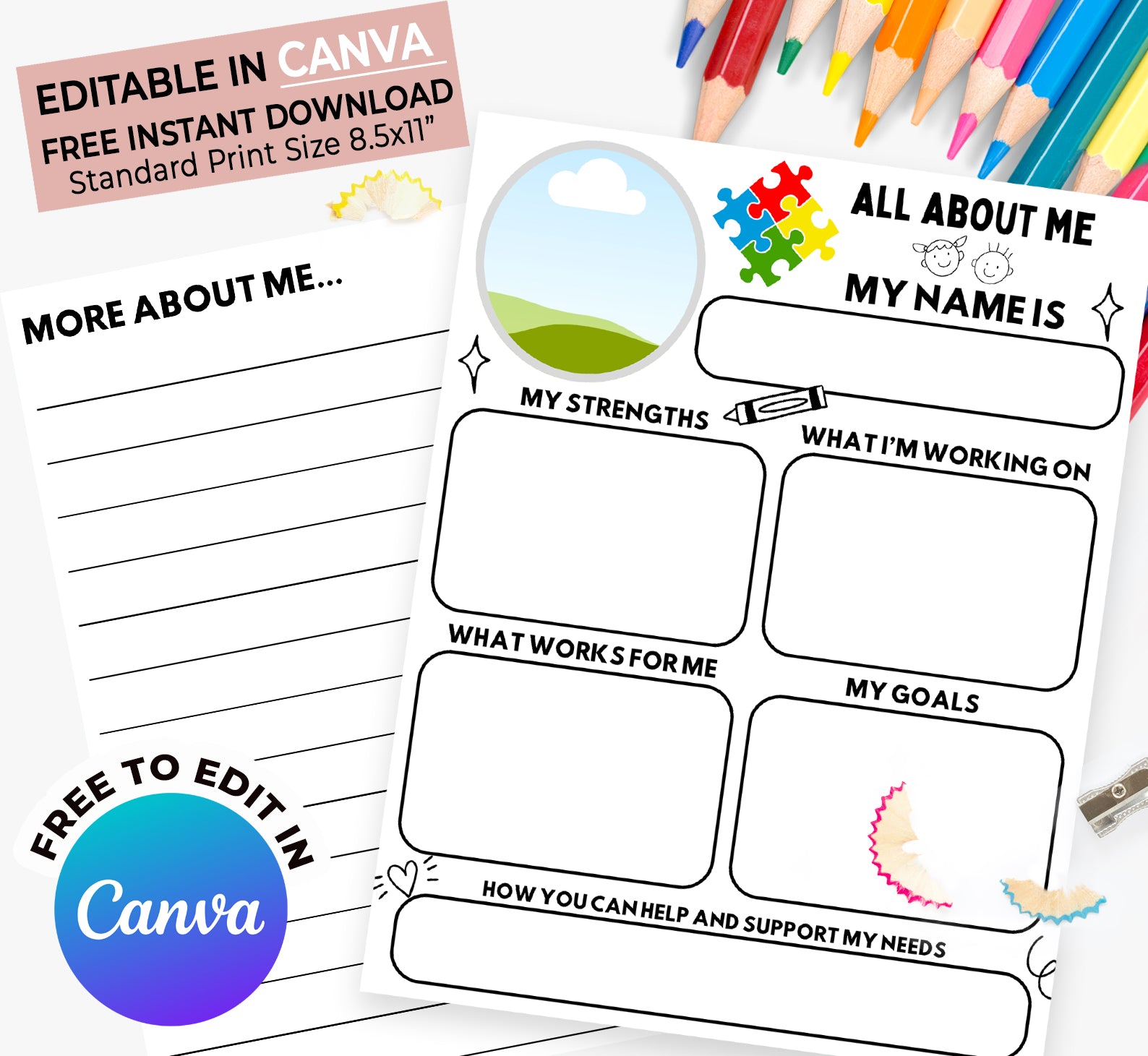 All About Me Sheet (FREE Edit In Canva & Instant Download)
